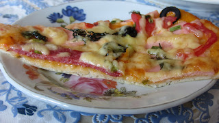 семейство наелось до отвала (из этого количества теста получается две (!) немаленьких пиццы), сказали, что моя пицца гораздо вкуснее, чем в пиццерии. И (приятная мелочь) сэкономлена куча денег!